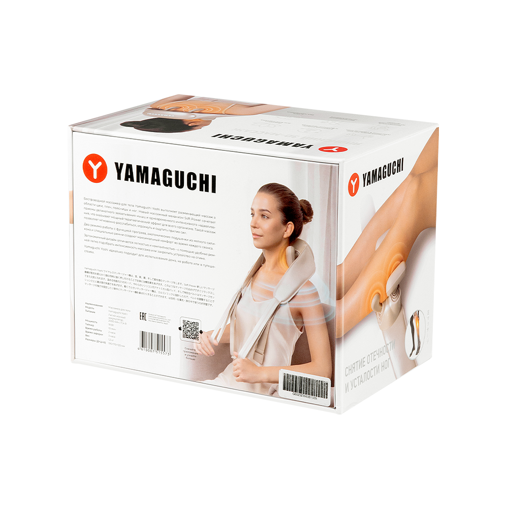 Беспроводной массажер для тела Yamaguchi Yoshi выполняет разминающий массаж в области шеи, плеч, поясницы и ног. Новый массажный механизм Soft Power сочетает приемы деликатного захватывания мышц и одновременного интенсивного надавливания, что оказывает мощный терапевтический эффект для всего организма. Такой массаж позволяет мгновенно расслабиться, отдохнуть и ощутить прилив сил.