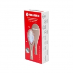 Помимо того, что расчёска возвращает волосам плотность и эластичность, делая их крепкими, как после процедуры восстановления, она также регулирует секрецию кожного сала и борется с некоторыми специфическими состояниями кожи головы — перхотью и обильным шелушением. Выполненная из высокопрочных материалов, расчёска с рифлёной поверхностью уверенно ощущается в руке — без утяжеления и скольжения. За счёт этого её удобно использовать не только дома, но и брать с собой, чтобы независимо от обстоятельств поддерживать ухоженный, здоровый вид прядей.